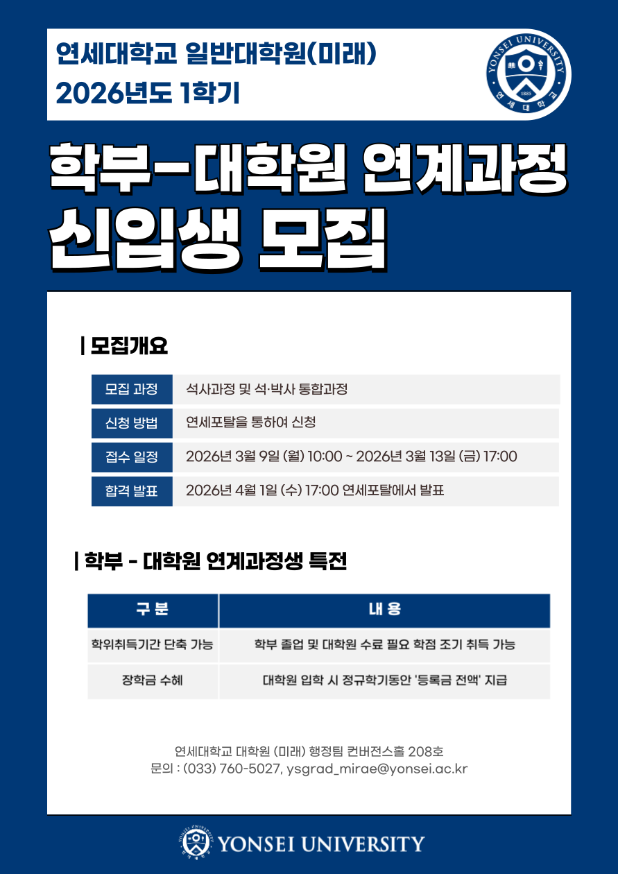 - 2026학년도 1학기 학부-대학원 연계과정 신입생 모집